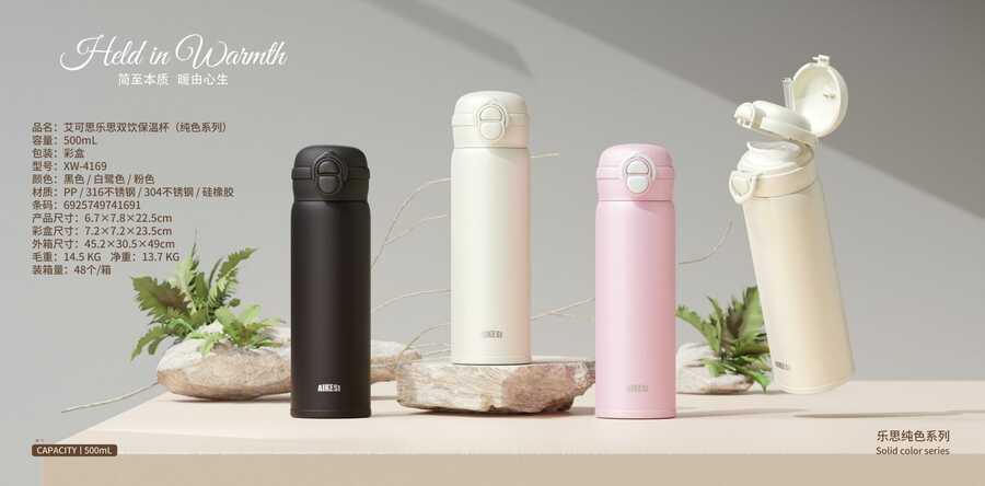 艾可思乐思双饮保温杯500mL(纯色系列)